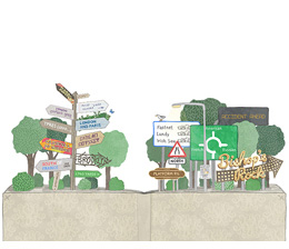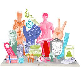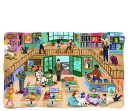 There are 20 clues for 20 different books depicted in the illustration. Simply click on a clue and enter your guess in the box. Can you solve them all?