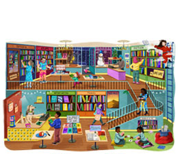 This year’s Hidden Books Game is illustrated by Sandhya Prabhat. Sandhya is an independent Animator and Illustrator based in the Bay Area, California and is from Chennai, India.