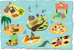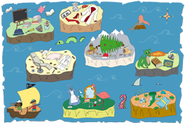 7 islands, 7 book characters. Can you solve them all? Just click on each island and enter your answer in the box.