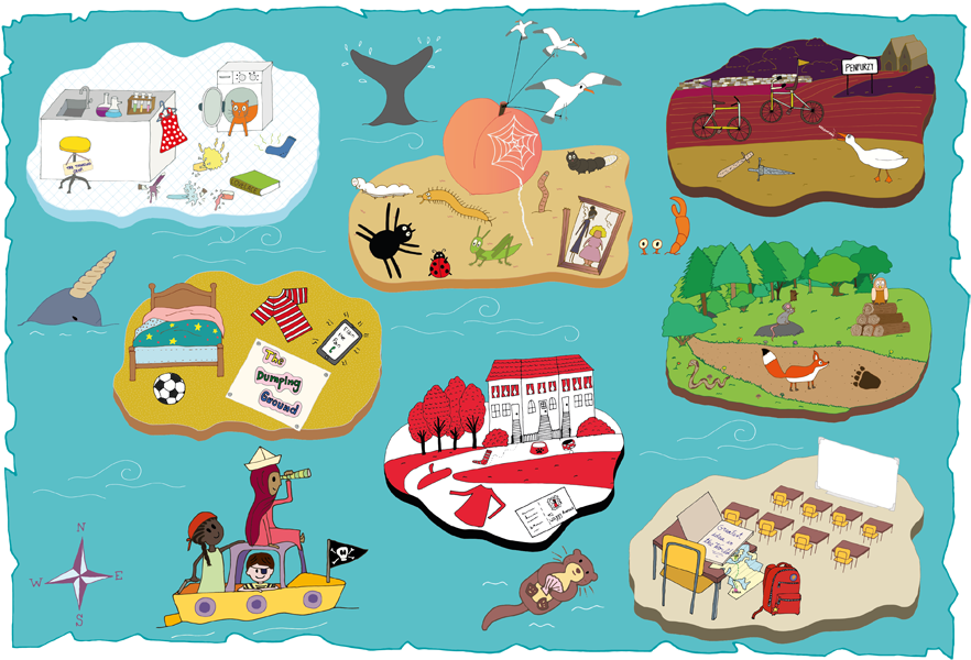 Calling young adventurers! Guess which book character lives on each island on our treasure map below.
